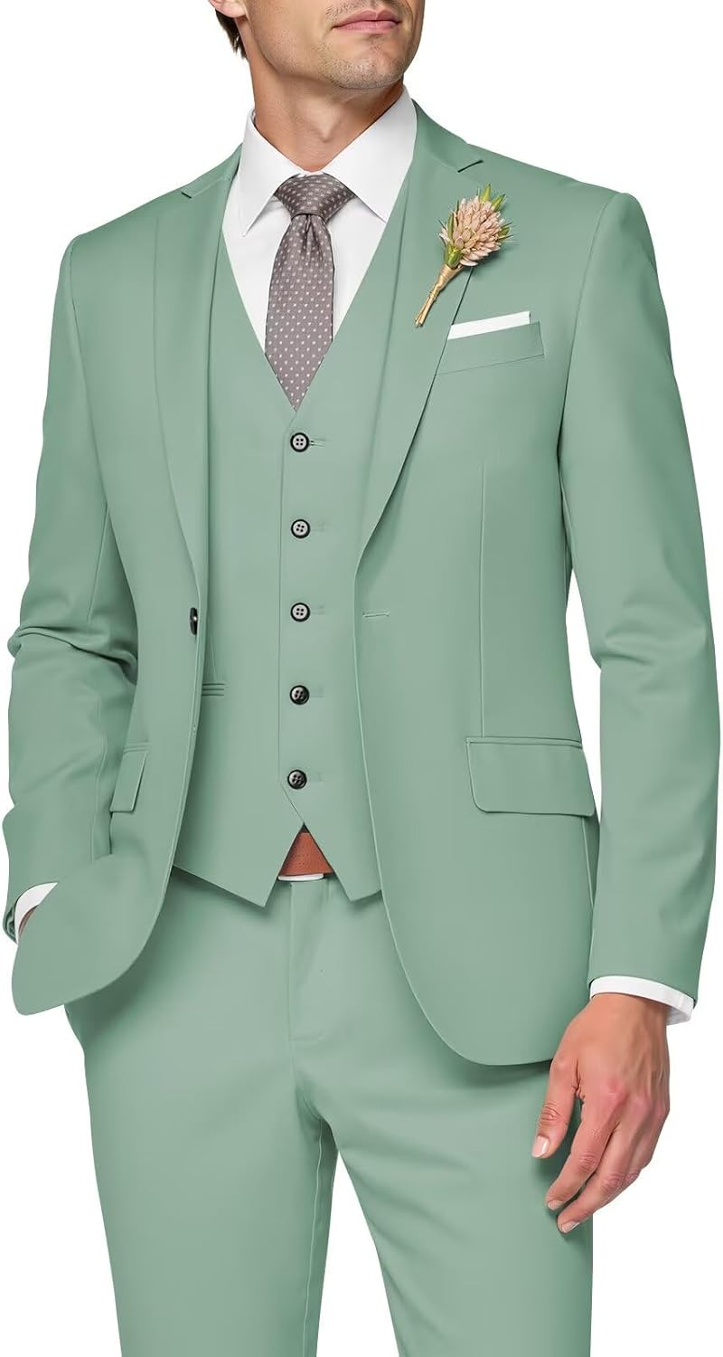 【Premium Material】–Slim 3 Pieces Suits Made of 20% Polyester,80% Viscose;This Groomsmen Suit 3 Piece Men Slim Fit Suits is made of high-quality fabric,Featuring two real flap pockets.Lightweight and comfortable,Soft and breathable,easy to clean,and can provide you with a comfortable wearing experience.