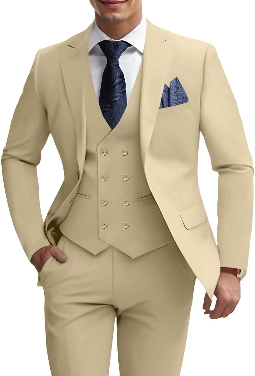 Men’s 3-piece Suit for Formal: one button slim-fit jacket + double breasted vest + modern flat-front pants. Suitable for Wedding,Party, Halloween, Christmas ,Prom ,Cocktail , Business ,Any Festive, Work Formal Occasion, daily Casual