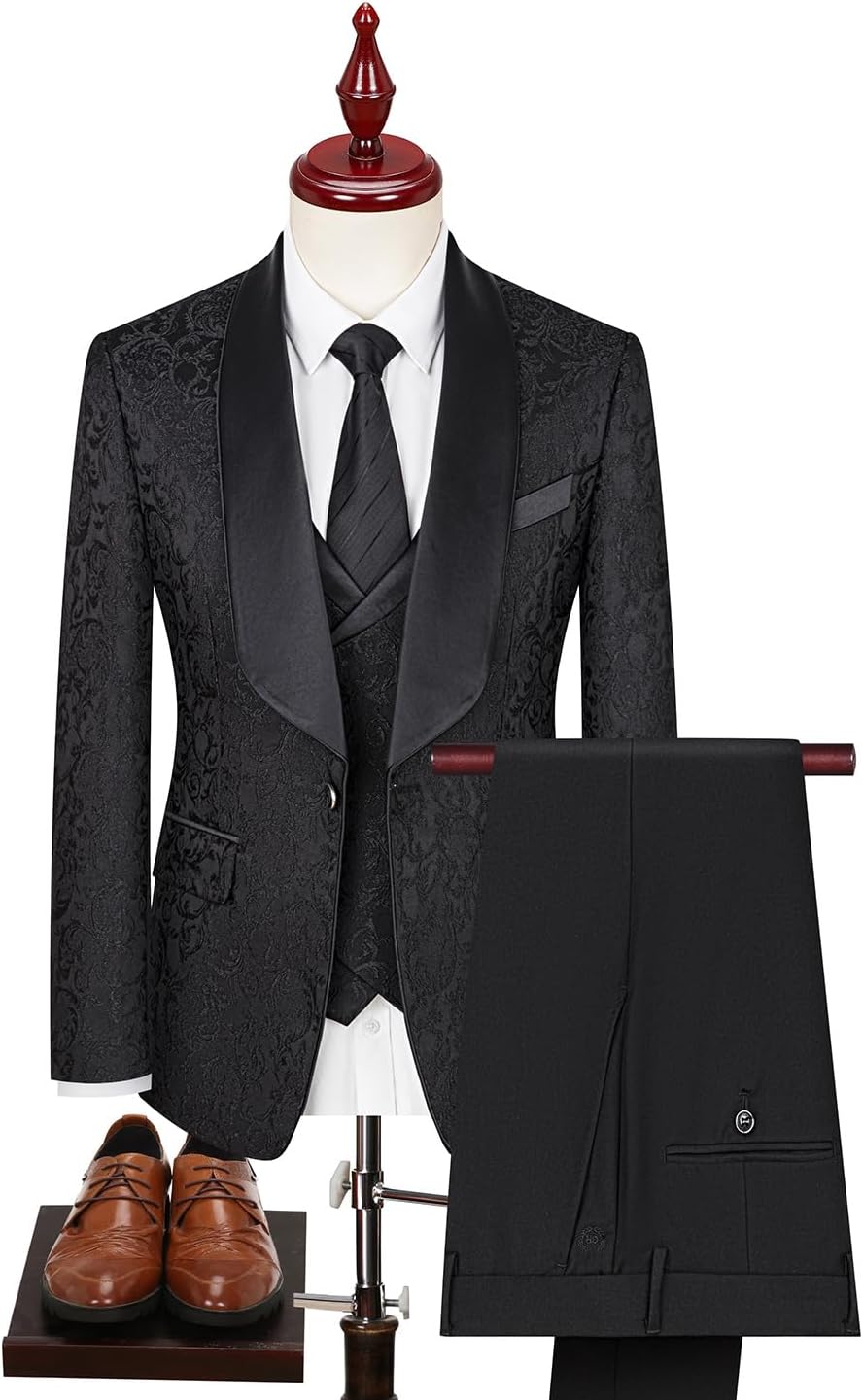 【3 Pieces Wedding Tuxedo for Men】The fashionable formal tuxedo prom suit for men 2025 is made of high-quality durable light weight paisley fabric.Exclusive customized jacquard fabric,luxurious and premium with a glossy finish.giving you unique texture and comfortable wearing experience, finished by excellent stitching.